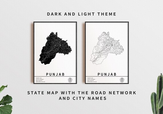 Printable Map of Punjab India With City Names Instant Download