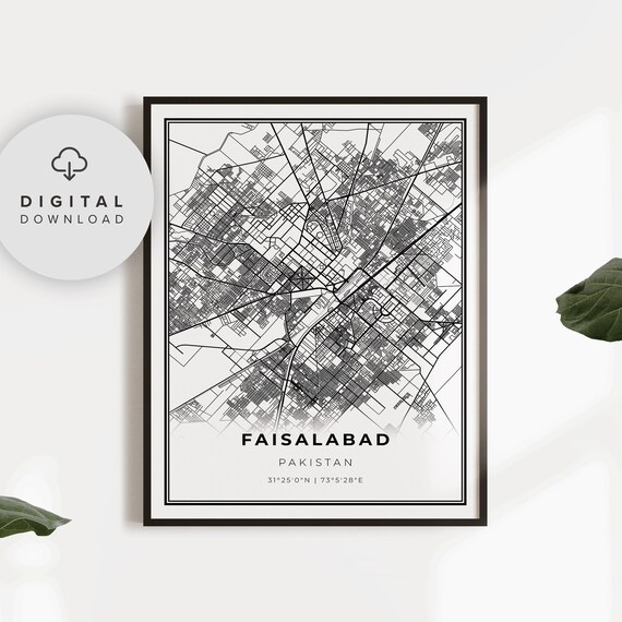 Faisalabad Map Print, Pakistan Map Art Poster, Lyallpur Punjab